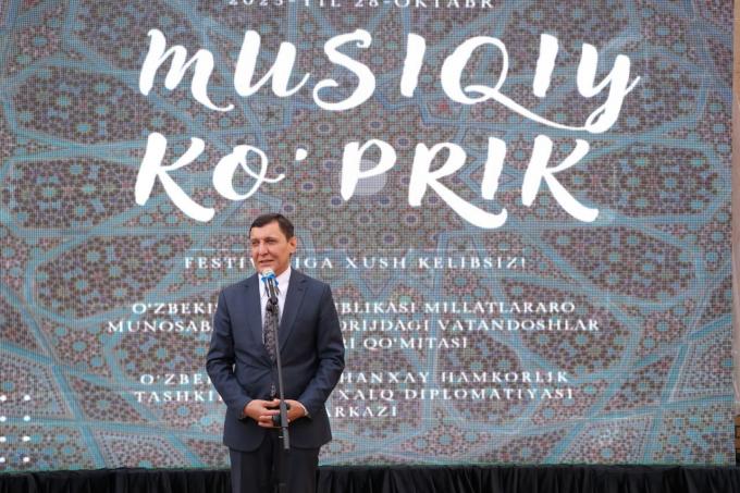Практическим выражением этих целей стало проведение 28 октября текущего года в павильоне Национальных культурных центров "музыкального моста" под девизом “Единство в звуках, дружба в сердцах”, организованного Центром народной дипломатии ШОС в Узбекистане, Комитетом по вопросам межнациональных отношений и соотечественников за рубежом Республики Узбекистан и Государственным институтом искусств и культуры Узбекистана при финансовой поддержке Общественного фонда по поддержке институтов гражданского общества при Олий Мажлисе Республики Узбекистан. Основная идея художественного вечера заключалась в том, чтобы посредством музыкального исполнения выразить на языке искусства, что все нации и народности, проживающие в Узбекистане, в равной степени несут ответственность за развитие страны в процессе формирования единой гражданской идентичности.