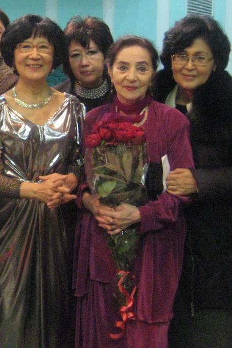 На фото слева направо: заслуженный деятель искусств Узбекистана Офелия Юсупова (пианистка)(сестра), Гульчехра Агзамова (невестка), Народная артистка Узбекистана Клара Юсупова (танцовщица), Сурая Абдуллаева (племянница) Новый маэстро продемонстрировал отличное знание партитуры. Исходившая от него энергетика, передалась оркестру и балерине, придала танцу какую-то особую магию и выразительность. Он продирижировал оркестром всю партию и это было наилучшее исполнение. Маэстро поблагодарил коллег и балерину, сказав последней, что именно её выступлением он был настолько впечатлён, что не удержался и встал за дирижёрский пульт. Это был величайший композитор современности Арам Ильич Хачатурян. «Танец с саблями» под аккомпанемент автора исполнила узбекская танцовщица Клара Юсупова. Мы вспоминаем сегодня об этом уникальном моменте в истории танца и поздравляем Народную артистку Узбекистана, Лауреата Государственной премии Клару Юсупову с 95-летним юбилеем. М.Абдуллаева - профессор Государственной консерватории Узбекистана;Ш.Гафурова - профессор Государственной консерватории Узбекистана