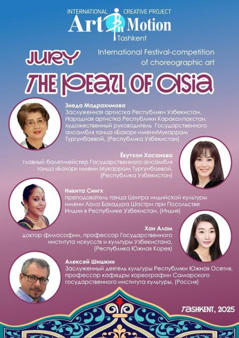 Итоги Международного фестиваля-конкурса хореографического искусства «ЖЕМЧУЖИНА АЗИИ» 21-24 ноября 2025 года, Ташкент ГРАН-ПРИ – «Заслуженный коллектив народного творчества РФ», Образцовый ансамбль народного танца «БУЛЖАМУУР», Руководитель Овчинникова Людмила Доржиевна, Заслуженный работник культуры Российской Федерации, Лауреат Премии Правительства РФ «Душа России», Педагог Попова Марина Андреевна, Россия, Республика Бурятия, г. Улан-Удэ ГРАН-ПРИ В НОМИНАЦИИ «ЭСТРАДНЫЙ ТАНЕЦ» – Театр танца BasTet, Руководитель Тур Ирина Игоревна, Республика Узбекистан, г. Ташкент Лауреаты I степени «Заслуженный коллектив народного творчества РФ» Образцовый ансамбль народного танца «БУЛЖАМУУР» Россия, Республика Бурятия, г. Улан-Удэ Народный танец II возрастная группа (8-10 лет) III возрастная группа (11-14 лет) Народный ансамбль “Дэя” Республика Кыргызстан, г. Бишкек Народный танец VII возрастная группа – смешанная (8-12лет) Народный ансамбль танца «Калейдоскоп» Республика Узбекистан, Ташкентская область, город Алмалык Народный танец IV возрастная группа (15-20 лет) Студия Танца “Istiqlol” Республика Узбекистан, г. Ташкент Народный танец