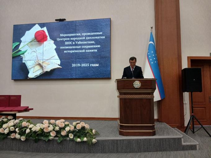 Также на конференции с докладом выступил директор Центра Кабулжон Сабиров. В своей речи он отметил, что сохранение исторической памяти является важным фундаментом народной дипломатии, и подчеркнул, что значительный вклад узбекского народа в победу над фашизмом во Второй мировой войне широко освещается на международном уровне. Он особо отметил, что в Узбекистане 9 мая – День памяти и почестей – отмечается как символ глубокого уважения к памяти предков, и что самоотверженный труд на фронте и в тылу имеет важное значение в воспитании молодого поколения в духе патриотизма. Вместе с этим была представлена информация о международных проектах Центра народной дипломатии, направленных на сохранение исторической памяти и укрепление межэтнической дружбы. В частности, были упомянуты научные и практические мероприятия, выставки и вечера памяти, реализованные в сотрудничестве с Беларусью и Россией. Было подчеркнуто, что эти инициативы имеют большое значение для изучения общего исторического наследия и передачи его будущим поколениям. В ходе конференции специалисты и историки представили доклады по актуальным темам, таким как национальные воинские формирования во Второй мировой войне, духовно-нравственный облик узбекских воинов, развитие военного искусства в годы войны, трудовой героизм в тылу, вклад в победу над японским милитаризмом и партизанское движение.