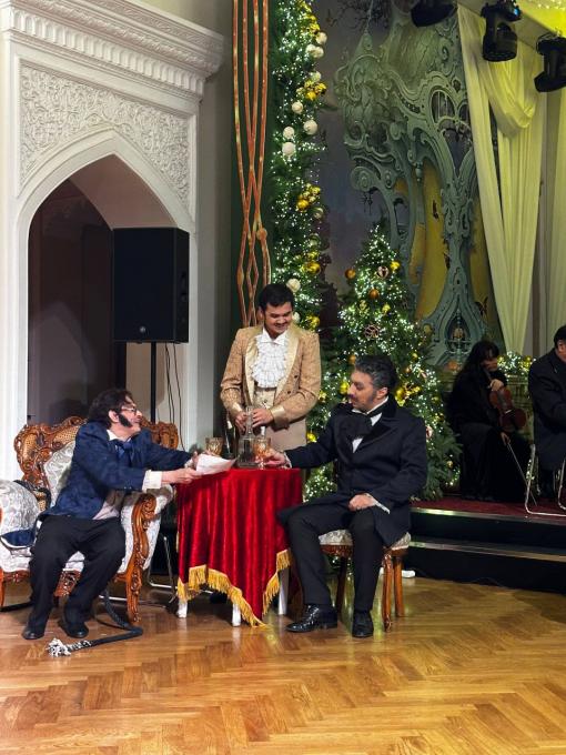 Звучал симфонический оркестр наставников нашего театра - это было феерично! Музыка захватывала и уносила нас в то время, когда творил гений Моцарт. Балетмейстером всей этой феерии выступил потрясающий, талантливый Равшан Чарыев. Огромное спасибо и глубокий поклон всем артистам, участвовавшим в постановке. Все прекрасно исполнили свои роли: пели, двигались и вели диалоги в лучших традициях комической оперы. Невозможно было не фотографировать: всё было таким ярким - прекрасные артисты в великолепных костюмах и очень красивых декорациях! Viva, Моцарт!
