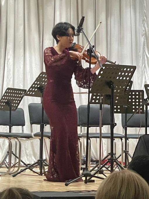 Еще до выхода на сцену было заметно как волнуется Нилуфар Мухиддинова, ведь со школой им.Успенского были связано детство и годы юности.Многие помнят эту одаренную девочку, её участие в различных конкурсах республики Узбекистан,которая последние 10 лет проживает в Корее и успела закончить Национальный университет Искусств. Стала лауреатом 1 премии Международного конкурса им. Глазунова во Франции и обладатель второго места на Международном конкурсе скрипачей в Санкт-Петербурге.Нилуфар частый гость правительственных мероприятий :2021 году выступление в Голубом зале (Чонвадэ) во время визита Шавката Мирзиёева и в 2023 году выступление по приглашению МИД Республики Корея во время визита министра иностранных дел Узбекистана Бахтияра Саидова.
