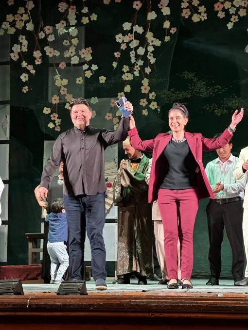 Особое волшебство вечеру придал симфонический оркестр Музыкального театра-студии под руководством блестящего дирижёра Бобура Курбаналиева. Под взмахом его руки музыка не просто сопровождала пение, а буквально лилась, заполняя зал и обволакивая каждого слушателя. Это было невероятно талантливо, тонко и по-настоящему вдохновляюще. Поздравляем выпускников с успешным стартом! Пусть этот "путь Баттерфляй" станет для них началом долгого и яркого творческого полёта. Спектакль прошёл в стенах Узбекского Театра Музыкальной драмы и Комедии имени Мукими, так как в Большом зале консерватории сейчас идёт ремонт. Я была рада побывать в этом прекрасном театре, храме Мельпомены.