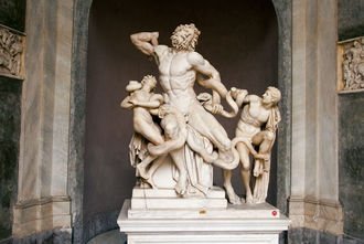Лаокоон и его сыновья. Скульптура. Описание. История![]() Лаокоон - в греческой мифологии - жрец Аполлона в Трое. «Лаокоон и его сыновья» - мраморная римская копия с легендарной скульптурной группы, созданной мастерами с о. Родос Агесандром, Афинодором и Полидором в I веке до н. э. СюжетСогласно греческой мифологии, Лаокоон, во время Троянской войны, убеждал городских жителей, уничтожить деревянного троянского коня, которого отступая ахейцы оставили у ворот («Бойтесь данайцев, дары приносящих!»). История находки1506 год - известная античная мраморная группа была найдена итальянцем Фелисом де Фредисом в своем винограднике на Эсквилине (Рим). В скором времени папа Юлий II приобрел эту группу, уступив де Фредису пожизненно доходы с заставы Порта-Сан-Джованни (ежегодно до 600 золотых дукатов (около 3 тыс. золотых рублей). В ватиканском «дворе статуй», или Бельведере, для Лаокоона архитектор Джулиано да Сангалло спроектировал особую нишу. Копии. РеставрацияНемного поздней Браманте сделал с Лаокоона первую бронзовую копию по восковой модели Джакопо Сансовино. Потом Микеланджело, тщательно изучив Лаокоона, сообщил, что группа изготовлена не из одной глыбы мрамора, как утверждает Плиний. Когда Франциск I, после победы при Мариньяно (1616 г.), потребовал от Льва Х группу себе в подарок, папа для удовлетворения короля Франции заказал Баччо Бандинелли копию статуи. Эта копия на сегодняшний день находится в музее Уффици (Флоренция). Бандинелли же стал и первым реставратором Лаокоона, который был найден без правых рук отца и младшего сына и без правой кисти руки старшего сына. Однако свою реставрацию он не внес в оригинал, а только сделал в упомянутой копии. Реставрация должна быть признана удачной. Овербек и за ним большинство археологов-классиков отдают предпочтение видеть Лаокоона и младшего сына закинувшими правые руки за голову, первого — от боли, второго — в предсмертной агонии. Лаокоон уже обречен на погибель, он полностью находясь под влиянием жуткой боли от укуса змеи, поражающего его, подобно молнии. Напрягаясь всем телом, Лаокоон борется со змеей. Левой рукой он душит змею. Все реставраторы и вообще художники абсолютно справедливо требовали того же и от правой руки, беря за основу простейший закон параллельности движений и инстинктивности действий рук и ног. Правая рука младшего сына тоже не была закинута, а искала точку опоры, потому как его тело потеряло опору и приподнято кольцами змеи.