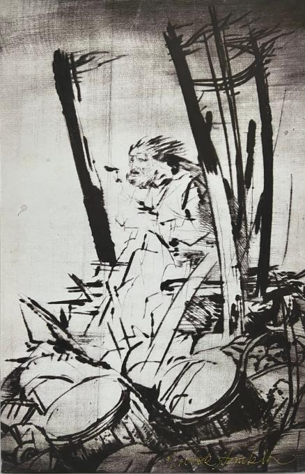Есть работы, на которых фон и изображённые фигуры сливаются, разнонаправленная штриховка создаёт дивные вихри, вселенские сквозняки, сквозь которые слышны то жестяные барабаны, то ветра вой в печной трубе. Есть работы, издалека напоминающие гравюры минувших эпох: они подобны смысловым матрицам средневековых мистерий, в них вызревает то эсхатологические откровение, которое нисходит лишь к затворникам и исихастам. Высокая плотность штрихов не заполняет пространство картона, но создаёт метафизическое пространство, в котором свершается удивительная возгонка энергий. В какой-то момент хочется встать у этих работ с томиком Алексея Апухтина и беззвучно шептать, судорожно переворачивая страницы: …Всё васильки, васильки… Как они смеют смеяться? …Черные мысли, как мухи, всю ночь не дают мне покою:Жалят, язвят и кружатся над бедной моей головою!Только прогонишь одну, а уж в сердце впилася другая, —Вся вспоминается жизнь, так бесплодно в мечтах прожитая!Хочешь забыть, разлюбить, а все любишь сильней и больнее…Эх! кабы ночь настоящая, вечная ночь поскорее! …Мне не жаль, что огонь, закипевший в крови,Мое сердце сжигал и томил,Но мне жаль, что когда-то я жил без любви,Но мне жаль, что я мало любил! …Благословить ее не смеюИ не могу ее проклясть… …Снова один я… Опять без значеньяДень убегает за днем…