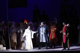 В неразрывном ансамбле с оркестром выразительно пели и эмоционально жили на сцене все герои спектакля. Оркестр точно передавал бездушный похмельный «беспредел» опричнины эпохи Ивана Грозного. В полном слиянии с музыкой и в бурной «истине страстей» шло динамичное существование героев на сцене. По законам этой музыки в полной органике с режиссёрским замыслом раскрывались и безудержность страсти царского опричника Григория Грязного (Махмуд Рузиев), и ревнивое неистовство его бывшей возлюбленной Любаши (Яника Багрянская), ставших и жертвами, и носителями зла и горько наказанных за свои злодеяния в конце спектакля. В полном соответствии с музыкой был живописно раскрыт характер доброго, радушного и несчастного купца Василия Степановича Собакина (Кирилл Борчанинов), повергнутого в отчаяние неожиданной бедой – смертельным недугом отравленной ядовитым зельем дочери – царевны Марфы. Музыка светоносно передаёт возвышенную чистоту «царской невесты», юной Марфы (Лятифе Абиева), до самой своей кончины преданной своему чувству к молодому жениху Ивану Лыкову (Бекзод Садыков). И молодые герои в воплощении Абиевой и Садыкова были органичны, возвышенны и чисты в своих светлых надеждах и чувствах и трагичны в своей гибели в борьбе с жёсткими перипетиями реального мира. В опоре на музыку выразительно подчёркнуты и расцвечены противоречивые, неоднозначные характеры Малюты Скуратова (Султанбек Абдурахимов), лекаря-немца Бомелия (Нурмахмат Мухамедов), простоватой Дуняши, подруги Марфы (Рада Смирных) и наивной Домны Ивановны Сабуровой, купеческой жены (Надежда Банделет-Голендер). В спектакле нет мёртвых типажей, все они наделены живыми чувствами и оживлены многоцветными тембрами «действующих лиц» эпического мира Н.А. Римского-Корсакова, где чудо Любви и возвышенной Чистоты даже в смерти побеждает все исторические и житейские обстоятельства. Царя Ивана Васильевича Грозного исполняет постановщик оперы А.Е. Слоним. Образ Ивана Грозного введён в оперу самим Римским-Корсаковым в качестве «немого» персонажа. В спектакле его влияние на события волею постановщика увеличено – образ Царя представлен сквозным, вплоть до финала и завершающей его выразительной мизансцены, в которой в обилии жертв смутной эпохи представлен и сам Иван Грозный. Он карает своего опричника Григория Грязного и через мгновение, чуть позже, бессильно обвисает на своём царском посохе. Таким образом, он сливается в своём трагическом порыве со всеми героями и народом, произносящим финальную фразу: "О, Господи!" - в исступленном молении о прощении за всё, за всё... Это и есть катарсис (очищение), без которого не обходится ни одна классическая трагедия со времён Шекспира до наших дней. Стоит отдельно сказать о том, что гармония дирижёрского решения, режиссёрской концепции и индивидуальностей певцов-актёров в слиянии красивого и выразительного пения и убеждающего активного сценического действия сделала этот спектакль «Царская невеста», уже неоднократно слышанный и виденный ранее, – особенно событийным, выдающимся и значимым. Зал горячо реагировал, буквально, на каждый номер и на весь спектакль в целом. Овация в финале была поистине «премьерной». Зрители поздравили Андрея Евсеевича и всю его команду с выдающимся спектаклем. Они были в восторге, все благодарили за возможно