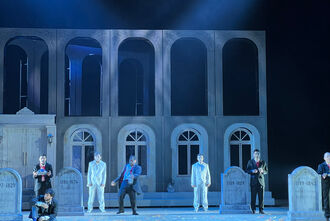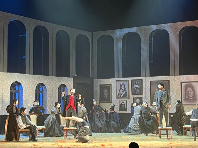 Спектакль разворачивается постепенно, сцены сменяют друг друга, как главы классического готического романа XIX века. В некоторые моменты кажется, что действие начинает туманить мозг (“Земля, как и вода, содержит газы. И это были пузыри земли…”), завораживать, словно древний оккультный ритуал, воспроизводимый в декадентском салоне. Странный дом, оконные проёмы которого похожи на надгробия (что неудивительно, ибо хозяева его - “живые трупы”), таит в себе немыслимые тайны. Снаружи - просто жилище, крылечко, деревце - чего уж больше! Но внутри разворачиваются настоящие мистерии: когда в вихре домашнего маскарада (блестяще выстроенного, напоминающего сюрреалистический вечер 1972-го года в замке Шато-де-Феррье) герои восклицают “Viva la liberta!”, то это это не просто гимн свободе - это гимн свободе от всего человеческого, слишком человеческого. Пусть маски персонажей вполне бесхитростны на первый взгляд, зато картины на стенах таинственного дома леденят душу: Вольфганг Амадей проницательно смотрит на игру с градусами, мадам Виолет Эдинбургская, словно мёртвая невеста, крадёт тепло и надежду, а зооморфные портреты и фотографии викторианской эпохи усиливают мистицизм, разлитый в воздухе. Вообще, игра с масками в опере весьма любопытна: Лепорелло в маске котика - трикстер, играющий с Дон Жуаном, мелкий бес, вкрадчиво нашёптывающий своему носителю ложь. А в сцене, когда Донна Анна, Дон Оттавио и Донна Эльвира снимают свои чёрные маски и исполняют “Protegga il giusto cielo! ” (“Да защитит нас праведное небо!”), кажущееся раскаяние осложняется весельем, творящемся в доме. Если обычно снять маску значит показать себя, показать истинное лицо, то в “Дон Жуане” снять милую маску (почти как на детских утренниках) - это надеть новую, более страшную, более загадочную - своё Лицо. Не зря в конце первого акта мы слышим хохот Командора. Это, несмотря на листопад, не осень патриарха, а минута его торжества: ему не придётся никого наказывать, ибо каждый наказал себя сам. Создать такую инфернальную атмосферу было бы невозможно, если бы не игра исполнителей, а состав 17-го января был замечателен! Да, в драматическом плане первый акт не всегда был убедителен, однако второй акт казался древним обрядом церемониальной магии, наполнившим театр совершенно невероятными энергиями, возгонка которых рождала поистине экстатическое восприятие финала. Говоря о вокальном воплощении оперы в премьерный день, в первом акте следует отметить замечательный, поистине “моцартовский” дуэт Лятифе Абиевой и Абдуллы Ширинова “Fuggi, crudele, fuggi”, хрустально прозвучавший дуэт Ленары Закировой и Аминзоды Джуманиязова “La ci darem la mano”, а также знаменитое “шампанское ариозо” Дона Жуана “Fin ch’han dal vino!”, во время которого гордость и слава оперы Узбекистана, знаменитый бас Кирилл Борчанинов блестяще фехтовал (!) ножом (можем ли и это считать аллюзией?!). Во втором акте Аминзода Джуманиязов легко, весело и беззаботно исполнил канцонетту “Deh, vienni alla finestra!” (“Ах, подойди к окну!”), правда к окошку подошла не только девушка, но и Командор, что подчеркнуло: герой уже обречён. Жемчужиной можно считать сцену, когда Ленара Закирова исполняет “Batti, batti, o bel Masetto!”: Церлина Закировой - демон в обличье ангела. Конкретно в этой сцене Церлина выглядит опытной и циничной искусительницей, а вот Дон Жуан (и это, уверены, была вер