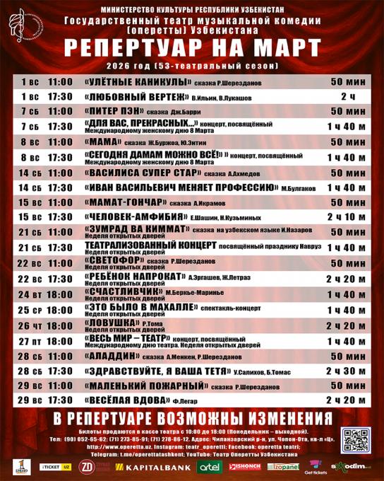 Репертуар на март 2026