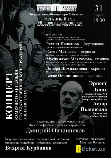 От ученика к мастеру – в одном звучании![]() В Органном зале Государственной консерватории Узбекистана состоялся концерт, посвящённый 90-летию Государственной консерватории Узбекистана, в основе которого лежала не столько программа, сколько идея – живая, осязаемая преемственность исполнительской традиции. На сцене встретились студенческий камерный оркестр и их наставники – молодые педагоги, уже сформировавшиеся как музыканты, но продолжающие оставаться внутри той же школы, того же художественного пространства. Эта мысль была точно обозначена во вступительном слове заслуженного наставника молодёжи Республики Узбекистан, профессора Бахрама Курбанова, который говорил о чрезвычайно важной практике – о выступлениях учеников и их учителей на одной сцене, сохраняя не дистанцию, а выстраивая единое творческое дыхание. И именно это ощущение неразделённости, общего музыкального поля стало ключом к восприятию всего вечера. Художественный руководитель и дирижёр студенческого ансамбля, доцент кафедры струнных инструментов Государственной консерватории Узбекистана Дмитрий Овчинников выстроил программу как внутренне связанное высказывание, где сама идея ансамбля приобретала особый смысл. Concerto Grosso № 1 Эрнеста Блоха (I, II и IV части), прозвучавшее в начале, оказалось не просто обращением к барочной форме, но и точной метафорой происходящего на сцене: диалог групп, перекличка голосов, постоянное движение от индивидуального к общему. В этой музыке словно проступала модель самого концерта – когда каждый остаётся собой, но в то же время существует внутри единого звучащего организма.