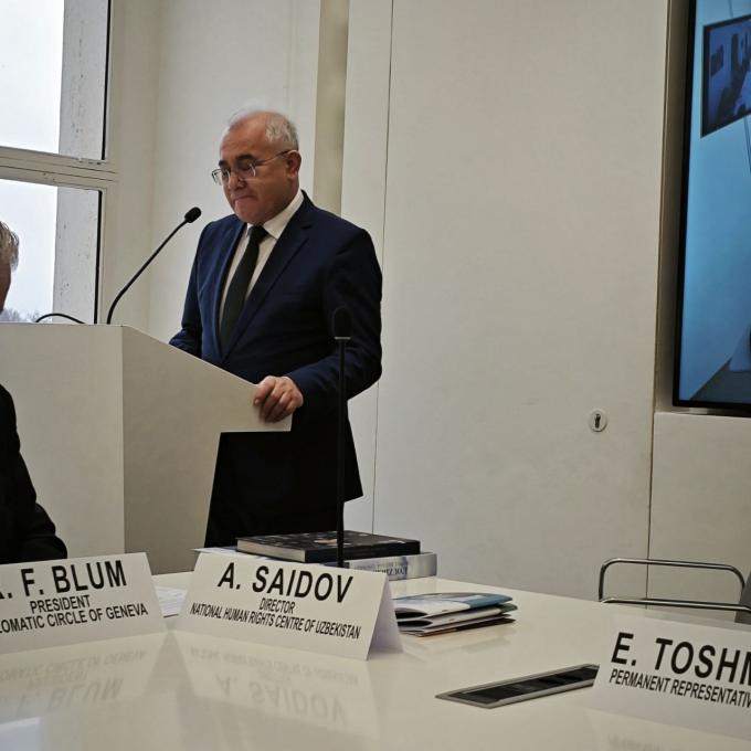 На мероприятии приняли участие директор Национального центра Республики Узбекистан по правам человека, А. Саидов, Постоянный представитель Республики Узбекистан при Отделении ООН в Женеве Э. Тошматов, президент Дипломатического круга Женевы Ф. Блюм, главный редактор журнала Diva International Марит Фоссе, а также свыше 50 представителей дипломатических миссий, международных организаций, экспертных кругов и СМИ. В ходе мероприятия А. Саидовым были представлены ключевые положения новой редакции Конституции Узбекистана, направленные на укрепление принципов верховенства закона, усиление гарантий прав и свобод человека, развитие механизмов парламентского и общественного контроля, а также расширение роли институтов гражданского общества. Отдельное внимание было уделено новеллам, касающимся защиты личных прав, совершенствования цифровых и экологических прав, повышения прозрачности деятельности государственных органов и создания условий для формирования культуры конституционного сознания.
