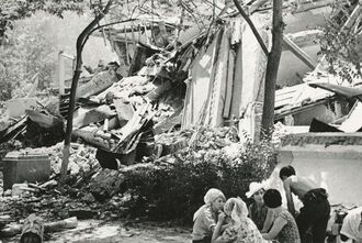 Однако подземные толчки не прекращались. "Все были в напряжении с этого дня. Покоя не было, потому что все время мы думали, вот произойдут еще толчки", — вспоминает Бабаев. Разрушения в городе оказались очень серьезными. Стихия оставила без крова свыше 300 тыс. человек, уничтожив более 2 млн кв. м жилья. Всего разрушенными оказались 185 медицинских и 245 промышленных зданий, 180 учебных заведений, около 700 объектов торговли и свыше 230 административных зданий. По воспоминаниям Бабаева, перед ташкентцами встали проблемы с транспортом, нехваткой магазинов и продуктов. ![]() © Эдуард Пенсон/ Госкаталог/ ГБУКиДО г. Москвы "МКАИ"