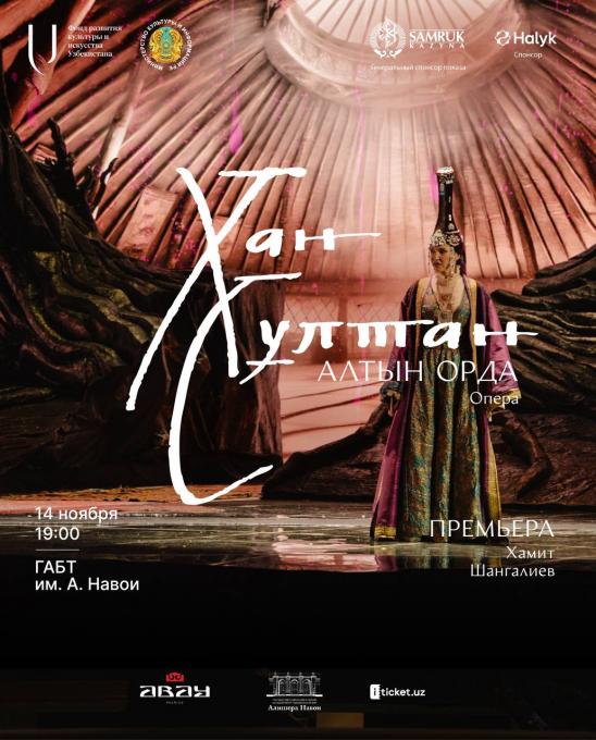 ВЯЧЕСЛАВ ЧЕРНУХО_ВОЛИЧ, главный дирижер ГАБТа им. А. Навои - Полностью присоединяюсь к сказанному. Спектакль очень впечатляющий и по содержанию, уровню исполнения, а также, по музыке тоже. Здесь очень умело использованы самые современные технологические возможности. Поражают его масштабы, виден огромный труд режиссера, видео монтажеров, светотехников. И все это, конечно, так привлекает тем, как все это исполняется и тем какая здесь звучит отличная музыка. Нравится мне также то, как звучит оркестр, солисты поют очень хорошо, чувствуется также очень высокий уровень театра. Есть много вещей, которые можно перенять и использовать у нас. ГУЛЯ САФАЕВА, тележурналист канала «Дунъе бойлаб» НТРК Узбекистана - Для тележурналиста, который готовит репортаж о такой премьере, я считаю, это особое событие. Есть что посмотреть, есть , что продумать и проанализировать , а потом рассказать телезрителям, правда? - Конечно, согласна. Я раньше видела оперу «Абай» этого театра и тоже была очень впечатлена. Но в этот раз, от этого спектакля у меня двойной восторг. Вот совсем нет декораций, а их отлично заменяют световые эффекты и это здорово. Увиденное здесь кажется совсем невероятным. У артистов костюмы просто шикарные. Я думаю, что сегодняшние зрители получили огромное удовольствие от того, что мы все увидели и услышали. Честно говоря, я бы еще раз эту оперу посмотрела. - Работать над передачей будет очень интересно… - Точно, нашим телезрителям мы обязательно все расскажем и покажем. В основе сюжета лежат события, связанные с образованием Золотой Орды. Главная героиня — Хан Султан, мать великого хана Берке, третья жена Джучи хана. Благодаря уму, характеру и политической мудрости она стала одним из выдающихся личностей своего времени и ключевой фигурой в истории Улуса Джучи. Наследие Золотой Орды — это духовное сокровище, объединяющее тюркские народы. Успеху оперы способствует не только ее отличное исполнение ведущими солистами театра и артистами балета , но и то, что в ее создании приняли участие известные учёные и специалисты из разных стран: руководитель Центра исследования Золотой Орды и татарских ханов Ильнур Миргалиев, профессор Мармара университета в Стамбуле Ильяс Кемалогу, кандидат исторических наук Нурлан Атыгаев. Автор идеи — Айнур Копбасарова. Опера создана на основе произведения драматурга Алмаса Нусипа, либретто написано Маралтаем Ыбыраевым. Постановщик — итальянский режиссер Давиде Ливерморе, известный сотрудничеством с такими легендарными исполнителями, как Лучано Паваротти, Пласидо Доминго, Жозе Каррерас, Мирелла Френи, Зубин Мета, а также с культовыми режиссерами Лука Ронкони, Андреем Тарковским и Чжан Имоу. Его постановки выходили на крупнейших сценах мира, включая La Scala (Милан), Римскую оперу, Teatro Regio в Турине и Carlo Felice в Генуе. Дирижер-постановщик — заслуженный деятель Республики Казахстан Нуржан Байбусинов, главный дирижер Казахского национального театра оперы и балета имени Абая. Дирижер – Куаныш Исмаилов Хотя опера создана в классическом жанре, постановка активно использует современные технологии — видеоинсталляции и световые эффекты. Символ жизни — тополиная ветвь, присутствующая в спектакле, подается с неожиданным художественным решением, усиливая эмоциональное воздействие на зрителя. Главные партии исполнят ве