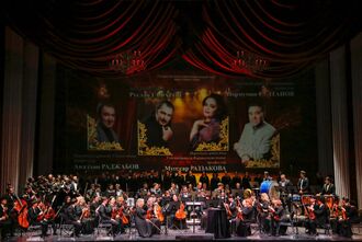 В свою очередь тоже умело и убедительно раскрыл своеобразие героев и классических мировых опер, и произведений узбекской музыкальной культуры Нормумин Султанов. Органично и разнообразно в его исполнении сменяли друг друга и Песня Левко из оперы Н. А. Римского-Корсакова «Майская ночь», и полный любовного томления Романс Неморино из оперы «Любовный напиток» Г. Доницетти, то две разные русские народные песни –« Ах ты, душечка!..» и «Вдоль по улице метелица метёт…», и радостный и оптимистичный «Карнавальный вальс» С. Юдакова. ». В экспрессивном любовном дуэте из оперы «Лючия ди Ламмермур в ансамбле с М. Раззаковой он выступил и эмоционально, и с большой отдачей. А в торжественном финале вечера-концерта участники и хоровой коллектив театра бравурно исполнили «Застольную» из «Травиаты» Лж. Верди, а затем завершили действо патриотической песней о Родине А. Назарова «Ватан азиздир». Руслана Гафаров, и эмоциональный, и обладающий высоким уровнем энергии тоже был на высотеНачав с динамичной, полной страсти и гнева арии оскорбленного шута Риголетто из одноименной оперы Дж. Верди, Р. Гафаров раскрыл и безысходную смятенную страстность рахманиновского Алеко, убедившегося в измене возлюбленной. А чкть позже и в непростом в смене настроений дуэте Риголетто с дочерью Джильдой, искренне и вдохновенно воплощенной Муяссар Раззаковой (стоит упомянуть и о гостье вечера, ведущей солистке театра Анастасии Юдиной, воплотившей в этой сцене образ Джиованны!) – он раскрыл все противоречия духа своего странного героя. . Затем он остроумно и зримо воплотился и в хитроумного Мулладуста из оперы С. Юдакова «Проделки Майсары». А чуть позже стал и ироничным Фигаро из оперы В. – А. Моцарта «Свадьба Фигаро» (он был первым исполнителем этой роли в премьере оперы «Свадьба Фигаро!). Бравурно и экспрессивно вместе с А. Раджабовым они подарили всем образ отважного тореадора Эскамильо в его куплетах, - а потом вместе с собратьями по творчеству ярко завершили вечер в финальной песне «Ватан азиздир». Каждый номер был по-особому горячо принят многочисленной публикой, а финал стал истинно праздничным апофеозом творческого мастерства четыроех выдающихся артистов оперы, которых зрители долго не отпускали со сцены. Органично и умело Андрей Слоним в ткани концерта нашел подходящие «точки», чтобы перед очередным номером каждого из четырех мастеров тепло и задушевно рассказать о творческом пути и особенностях развития дарования каждого из них. Десятилетия их творчества и совместного служения искусству стали предпосылкой и поводом для доверительных теплых слов о разных значительных эпизодах в творчестве каждого из них, об их становлении, поисках, обретениях на непростом пути. А замечательное видеооформление каждого номера, воплощенное в содружестве с постановщиками Яном Милениным, во многом способствовало особому значению этого творческого вечера четырех высоко талантливых Мастеров.