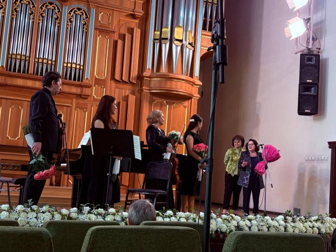Мехрибон Рахматова – талантливый молодой композитор, родом из Бухары. С раннего детства она проявляла интерес к музыке, подбирая на фортепиано различные мелодии. Именно это стало основой её творческого пути, и уже тогда её родители были уверены, кем она станет в будущем. Обучаясь в классе Дилором Сайдаминовой, она создавала романсы, вариации и квартетные произведения. Для своего отца – мастера игры на афганском рубабе – она сочинила фантазию для этого инструмента. Недавно на выставке «Творим вместе» композитор создала произведение «Мяу», вдохновлённое художественным изображением. На сцене выступили любимые публикой исполнители, лауреаты республиканских и международных конкурсов: Дмитрий Овчинников (альт) – профессор, заведующий кафедрой струнных инструментов Государственной консерватории Узбекистана; Асене Овчинникова – профессор кафедры струнных инструментов (скрипка, альт); Диана Аманбаева (фортепиано) – преподаватель кафедры камерной музыки; Мадина Бычкова (фортепиано) – пианистка и педагог. Ведущая концерта – заслуженный работник культуры Республики Узбекистан, профессор Инесса Гульзарова, провела слушателей сквозь «течение мыслей», раскрывая глубину и тончайшие оттенки звучащих произведений. На концерте прозвучало произведение, посвящённое сыну Дилором Сайдаминовой – Тиграну Шиганяну. Сочинение для альта и скрипки было создано для конкурса, где получило достойное признание. Исполнение отличалось высоким профессиональным уровнем и глубокой выразительностью, что вызвало бурную реакцию публики, зал разразился продолжительными аплодисментами. Кульминацией вечера стало произведение молодого автора М. Рахматовой – Соната для альта и фортепиано. Сочинение произвело сильное впечатление благодаря своей напряжённой драматургии. Партия фортепиано, открывающаяся повторяющимися аккордами и проходящая через всё произведение, создала ощущение внутреннего беспокойства и нарастающей тревоги. Использование диссонансов, тритонов, резких динамических контрастов (от piano до forte), а также ломаного ритма и низкого регистра усиливало чувство нестабильности. Все эти средства выразительности органично воплотили образ, к которому стремился композитор – своеобразный «танец дьявола». В завершение концерта прозвучала мировая премьера произведения «Мыслей течений…» – глубокого, философски насыщенного сочинения. В нем Дилором Сайдаминова раскрывается именно как философский композитор, что делает данное произведение особенно значимым. Оно написано для двух альтов и фортепиано и отличается тонкой внутренней драматургией. Как образно отметила Инесса Сергеевна, данное произведение можно интерпретировать как своеобразный диалог: два альта олицетворяют родителей, тогда как партия фортепиано представляет ребёнка. Его музыкальная линия наполнена энергией, внутренним беспокойством и поиском, словно он ещё не знает, куда двигаться. В свою очередь, «родители» партии альтов, направляют развитие, задают вектор движения и мягко ведут к гармонии, указывая верный путь.