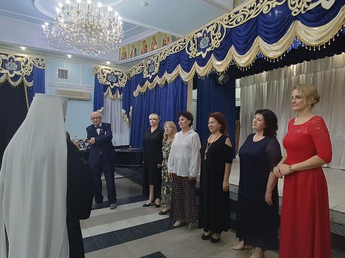 –За более чем четырнадцать лет служения в Узбекистане Вами как истинным созидателем обновленного здания подлинной православной религиозности укреплены тесные и нерушимые связи нашей епархии с епархией Екатеринбургской и Верхотурской, воссозданы нерушимые высокодуховные связи между отдельными епархиями Центральной Азии. Именно Вы стали инициатором паломничества узбекистанских православных людей на уникальный по своей значимости международный фестиваль «Царские дни». Осуществлен давний замысел воздвижения на территории Ташкентской и Узбекистанской Епархии памятника святителю Луке (В миру - Валентин Феликсович Войно-Ясенецкий). По Вашему благословению и при активнейшем содействии уже более 14 лет творческая группа ведущих солистов ГАБТа имени Алишера Навои во главе со мной и концертмейстером Л. В. Слоним дает регулярные серии благотворительных просветительских концертов в зале епархии, охватывая в своих программах лучшие произведения композиторов России, Узбекистана и многих зарубежных стран. Надо упомянуть и о замечательной галерее дней памяти Ивана Семёновича Козловского к 125-летию со дня его рождения и о Вашей поддержке в этом. Очень важно сказать и о том, что практически каждую нашу концертную композицию Вы открываете тёплым вступительным словом, с истинно отеческой заботой отзываясь о творчестве солистов – участников этих вечеров.