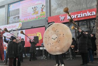 На торжественном открытии филиала «Корзинка Поселок Улугбек» посетителей ждала насыщенная праздничная программа: бодрящие звуки карнаев, выступление ходулистов и танцовщиц, музыкальная программа.