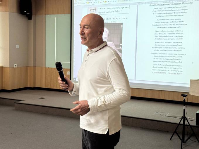 Ирина Кондратьева Огромная благодарность Умарову Пулату Джахановичу за презентацию и фильм о Духовном Викторе Абрамовиче, и Борису Рахимовичу за второй фильм и организацию вечера, посвященного такой знаковой и масштабной личности! Виктор Абрамович претерпел, как всё его поколение, множество трудностей, закалил характер, ставил задачи и успешно их решал.