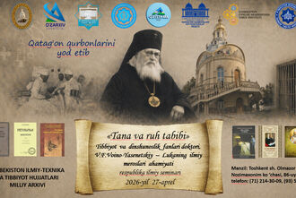 "Врач тела и души. Значение научного наследия доктора медицинских и богословских наук В. Ф. Войно-Ясенецкого — Луки" - такова тема состоявшегося научно-практического семинара![]() В соответствии с постановлением Президента Республики Узбекистан «О расширении работ по изучению жизни и деятельности наших соотечественников, ставших жертвами политических репрессий, их популяризации и увековечению их памяти» в целях изучения жизни и деятельности жертв репрессий, восстановления исторической правды о репрессированных соотечественниках и передачи её будущим поколениям, целевого использования документов, хранящихся в государственных архивах, широкого привлечения научных учреждений, системной организации духовно-просветительской и пропагандистской работы, введения архивных документов в научный оборот, а также воспитания молодого поколения на примере жизни и деятельности репрессированных соотечественников, 27 апреля текущего года в Национальном архиве научно-технической и медицинской документации Узбекистана был проведён научно-практический семинар на тему: «Врач тела и души. Значение научного наследия доктора медицинских и богословских наук В. Ф. Войно-Ясенецкого — Луки».