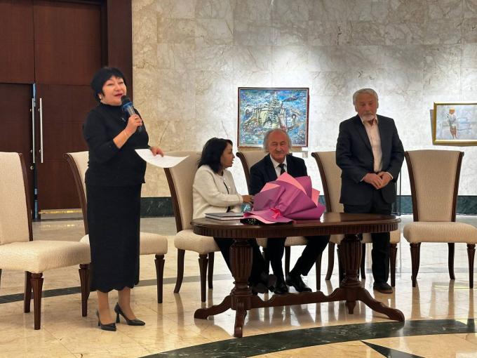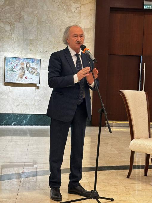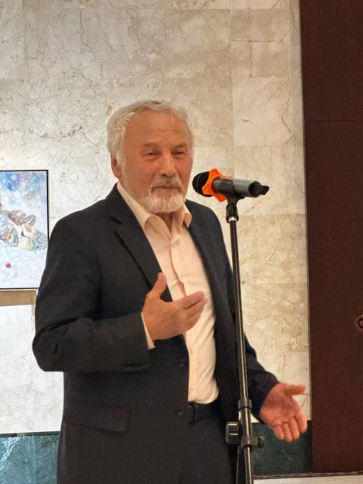 В Галерее НБУ состоялось открытие персональной выставки Народного художника Узбекистана, академика Файзуллы Ахмадалиева "Вслед за хадисом"![]() "Файзулла Ахмадалиев (Ахмадалиев Файзуллахан) — известный узбекский художник-живописец, профессор, действительный член Академии художеств Узбекистана и Народный художник Узбекистана (с 2022 года). Родился в 1950 году в Сайраме. Окончил Ташкентский театрально-художественный институт, продолжил обучение в аспирантуре Академии художеств СССР. Известен своими работами, сочетающими восточную тематику и современное видение. Преподает в Национальном институте искусств и дизайна".