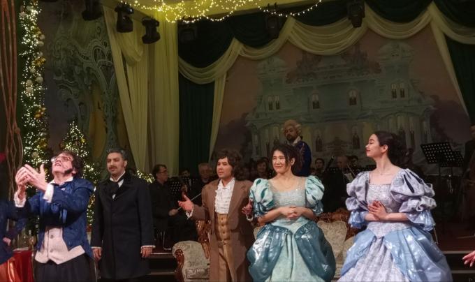 РАВИЛЬ ЯРУЛЛИН Бурные продолжительные овации, крики "браво" продолжили финал водевиля комической оперы, а точнее немецкого зингшпиля, великого Моцарта. Зрители, присутствовавшие в Музыкальной гостиной Большого театра имени А. Навои в этот вечер увидели маленькое, а точнее большое театральное чудо, родившееся из этого спектакля, в постановке Андрея Слонима. А спектакль был поставлен как раз к 240- летнему юбилею премьерной постановки его в Вене в начале февраля 1786 года. Замечательные декорации, где сама архитектура малого зала работала на спектакль, яркие костюмы, остроумные диалоги и пикировка актрис, претендующих на лидирующее место в труппе, смотрелись великолепно. Исполнение ими же виртуозных арий, блистательное воплощение Александром Полянским образа директора театра и отличная игра всех артистов, которые так были так увлечены своей жизнью в спектакле, что им даже не хватало сценического пространства, и подарили всем присутствующим это чудо, тем более что за дирижерским пультом стоял сам Моцарт. Это был Аьзамхон Ахмедов, превосходно, проведший весь этот спектакль.