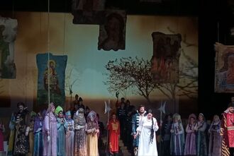 Безусловно! Набивший оскомину «пиджачный реализм», когда героев разных эпох и стилей непременно наряжают в пиджаки – не только не делает содержание оперы «более приближенным» к нашим дням, а вносит полную сумятицу. Ведь действуя в определенной эпохе, где персонажи называют друг друга «боярами», где живет и действует конкретный царь Иван Грозный – мы должны соблюдать внешние атрибуты этой эпохи, наделяя герое современным психологическим укладом. А то (глядя на целый ряд примеров стремления одеть «бояр» и «купеческих дочерей» в невероятные для их психологии и строя духа пиджаки и джинсы, мы приводим восприятие такого спектакля на грань психопатического искривления душ. Потому образ нашего спектакля адекватен эпохе действия. Но сценография условна – в ней есть и колокола, в которые бьют герои спектакля или в отчаянии, или в моменты радости. А в недавнем спектакле мы впервые добавили в сценографическое пространство и проекционную сценографию, которая, как думается, еще более усилила образность спектакля.