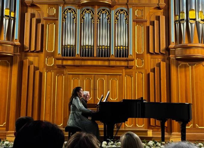 Концерт Хабибы Гаибовой и Олега Иванова стал примером того, как редкий репертуар может звучать актуально, захватывающе и глубоко современно. Это был не просто вечер классической музыки, а тщательно выстроенное художественное пространство, где каждая пьеса становилась частью единого замысла. Главное достижение этого концерта, в создании живого диалога: между эпохами, стилями, исполнителями и слушателями. И, пожалуй, именно такие проекты сегодня формируют новое восприятие академической музыки, как искусства не прошлого, а настоящего. Сабина Гимадиева,студентка 1 курса магистратурыГосударственной консерватории Узбекистана