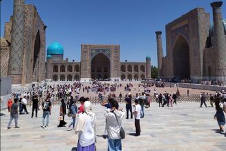 В 2022 году комплекс "Регистон" в Самарканде посетили более 1 млн туристов![]() В 2022 году ансамбль Регистан в Самаркандской области посетили 1 миллион 27 тысяч 951 местных и иностранных туристов. Для информации, Самарканд, известный как «Туристические ворота Нового Узбекистана», является столицей Всемирной туристской организации (ЮНВТО) в 2023 году. Юбилейная 25-я сессия Генеральной Ассамблеи ЮНВТО пройдет в Самарканде. Стоит отметить, что обслуживание гостей в комплексе было организовано на высоком уровне. В Регистане туристы имеют возможность воспользоваться услугами гида или аудиогида. В 2022 году был проведен ряд работ по дальнейшему совершенствованию деятельности ансамбля Регистан. В частности, уникальные исторические объекты, найденные в ходе реставрационных и консервационных работ, проводившихся в течение года, были представлены на выставке «Исторические картины Самарканда», организованной в медресе Тиллакори. 27 августа 2022 года скульптуры в композиции «Наставники и ученики» из экспозиции «История в картинах» в медресе Шердор были заменены реалистичными скульптурами из воска. Кроме того, солнечные часы, временно установленные директором Института астрономии им.Мирзо Улугбека академии наук Республики Узбекистан, академиком Шухратом Эгамбердиевым, в январе этого года были заменены стальными и установлены на специальной мраморной колонне. Стоит отметить, что текущий капитальный ремонт ансамбля Регистан проводится в сотрудничестве с Агентством культурного наследия. Были отреставрированы 75,0 м2 северных уличных фасадов медресе Улугбек, 60,0 м2 южных уличных фасадов медресе Шердор, 60 м2 тимпанов и панно во внутреннем дворе медресе Шердор, 25 м2 тимпанов и панно во внутреннем дворе медресе Тиллакори. С 1 по 8 января текущего года в Регистан уже прибыло в общей сложности 17 009 туристов. Из них 11 085 местных (2 645 детей) и 2 979 иностранных (300 детей) туристов.
